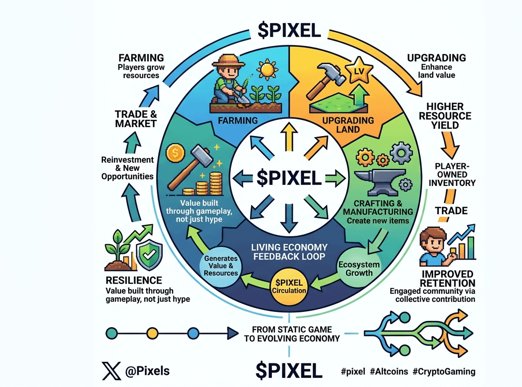 @Pixels stands out because it operates more like a living economy than a static game. At the center of this system is $PIXEL , which connects all layers of the Stacked ecosystem.