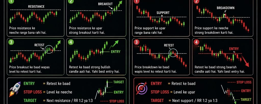 👉 Target = Next resistance / RR 1:2 or 1:3.
