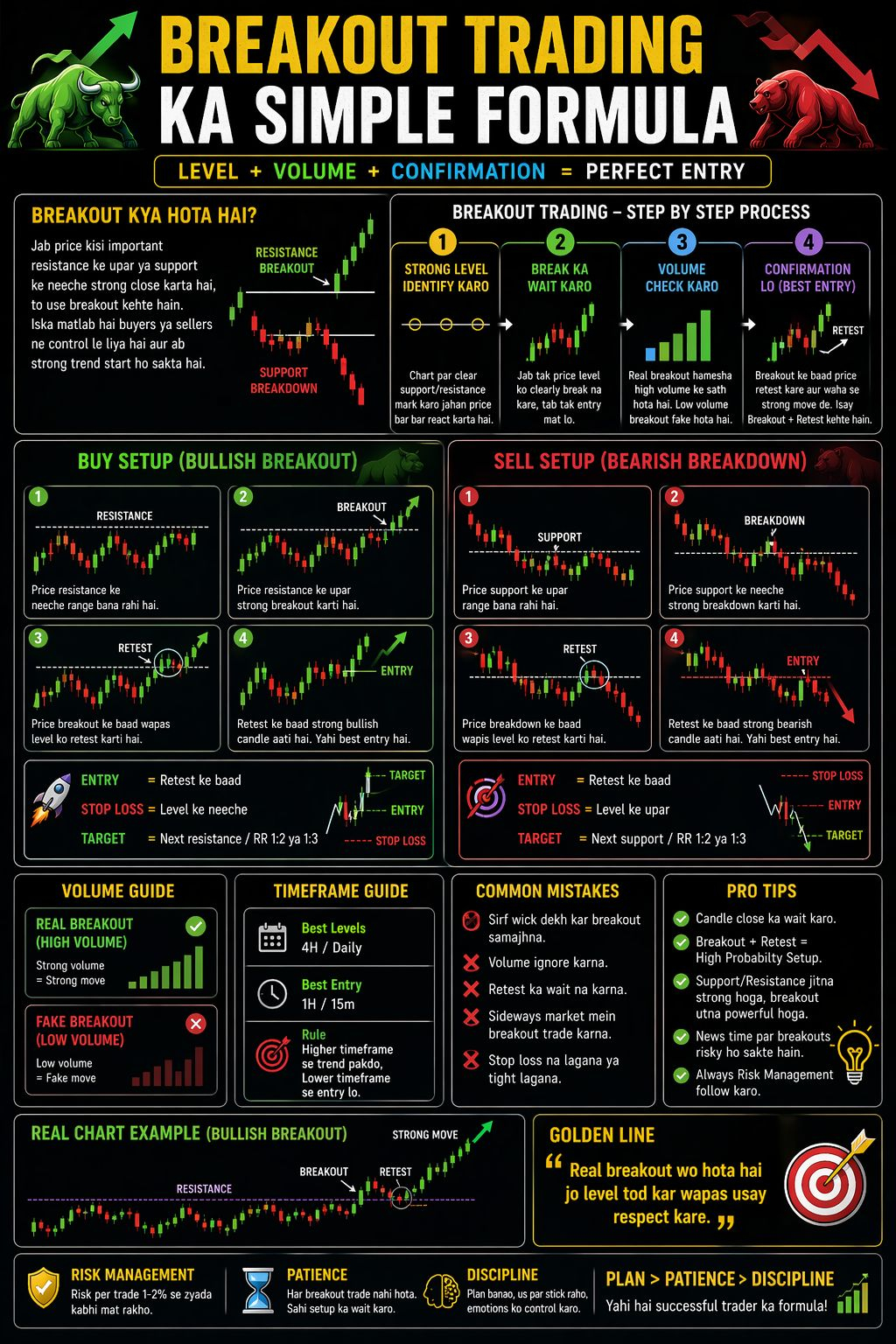 In the crypto market, the most powerful moves happen when the price breaks through an important level. Breakout Trading is based on this concept, where traders wait for the price to break resistance or support and then enter in that direction.