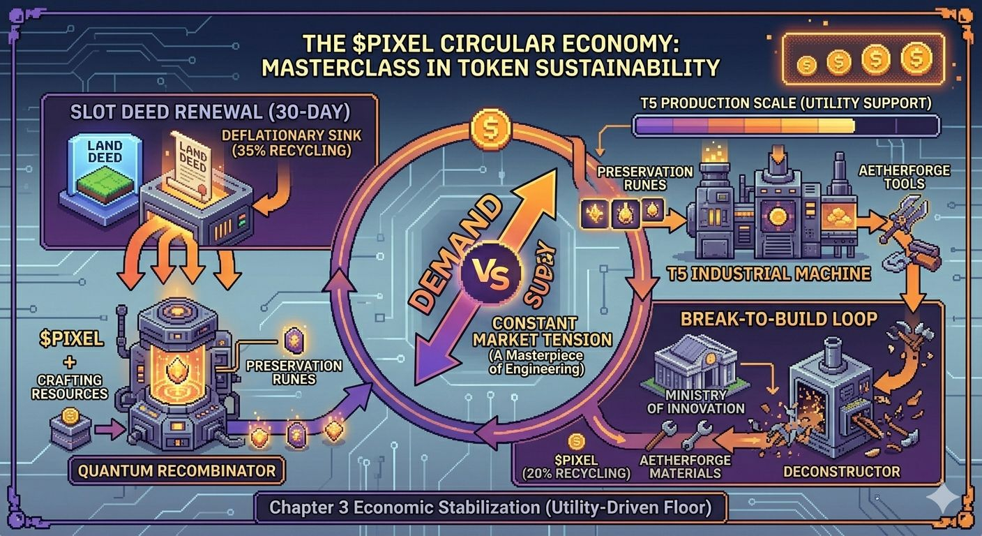 To keep those machines humming, one must craft Preservation Runes at the Quantum Recombinator. This is the "Alpha" that the noise-chasers are missing: PIXEL has become a vital, recurring operational cost for the most successful players. The "Break-to-Build" loop, utilizing the Deconstructor at the Ministry of Innovation, is a gorgeous example of a "circular economy." By melting down legacy assets for Aetherforge materials, the system creates a constant, healthy tension between supply and demand. It is, quite frankly, a masterpiece of economic engineering.