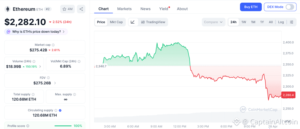 Ethereum (ETH) trades near $2,282 as of April 27, recovering from the $1,472 low hit earlier this year, according to CoinMarketCap. The Glamsterdam upgrade targeting mid-2026 promises parallel execution and a gas limit above 100 million.