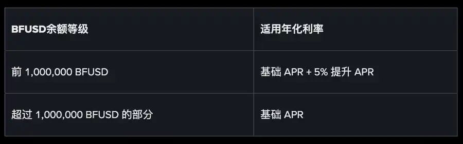 The annualized yield of BFUSD will dynamically fluctuate with changes in funding rates and hedging strategies, recently averaging around 4% to 7%, and the current actual annualized rate is about 6.34%. Earnings are distributed daily without the need for additional purchases; simply holding will automatically allow for collection.