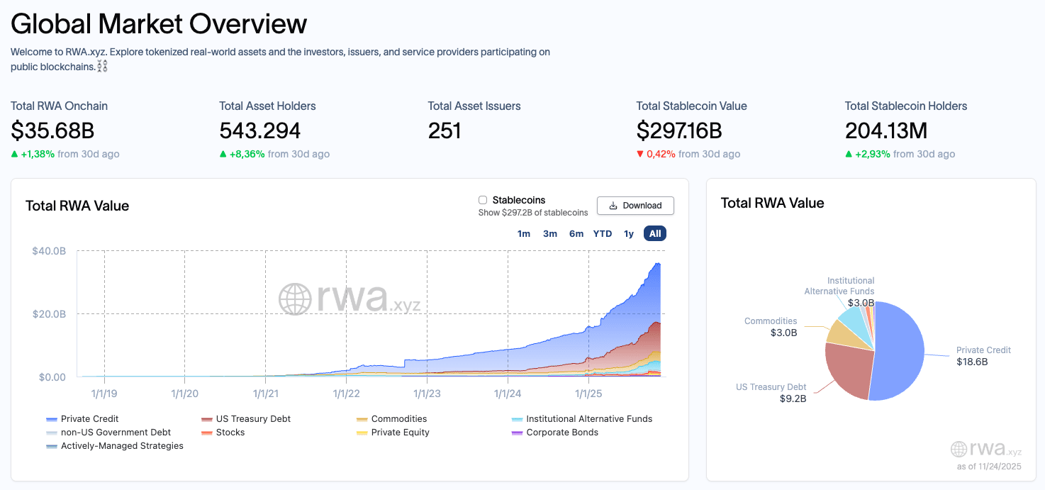 Watch out for this because it is important: the tokenization of real assets is already moving more than 35,000 million dollars. And we are not talking about monkey NFTs, we are talking about banks, managers, and regulated entities using blockchain for real financial products.