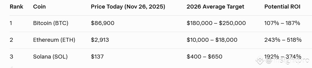 The crypto bull cycle is still in full swing as we close 2025, and Binance remains the #1 platform for liquidity, leverage, and new listings. After reviewing the latest institutional inflows, technical setups, ecosystem growth, and 2026 price forecasts from top analysts (CoinBureau, VanEck, Fundstrat, Standard Chartered, Changelly, etc.), these are the clear top 3 coins with the highest probability of strong returns in 2026.