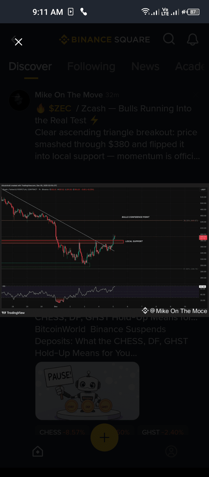 ZEC has given a clean ascending triangle breakout — the price smashed $380 and converted it into fresh local support. Momentum seems to be alive again, buyers are clearly regaining control.