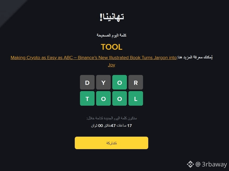 لعبة بينانس كلمة اليوم هي لعبة ممتعة وتعليمية تساعد المستخدمين على تعلم كلمات متعلقة بالعملات الرقمية والفوز بها من بينانس. فلماذا التأخير؟ ابدأ اليوم وأجني الارباح!
