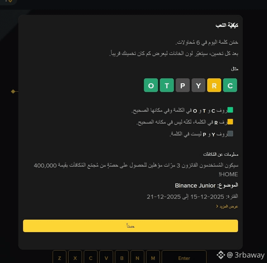 كلمة اليوم في بينانس اليوم أجب على 3 حروف