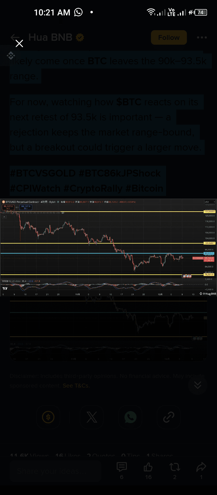 The real move will come when BTC breaks out of the 90k–93.5k range.