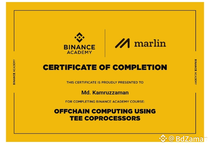 📢 Binance Academy: The Easiest Place to Start Learning Crypto: I have successfully completed "OFFCHAIN COMPUTING USING TEE COPROCESSOR" training and received a certificate arranged by @Marlin Protocol . Also grab a share 20,00,000 $POND token to attend the training session.