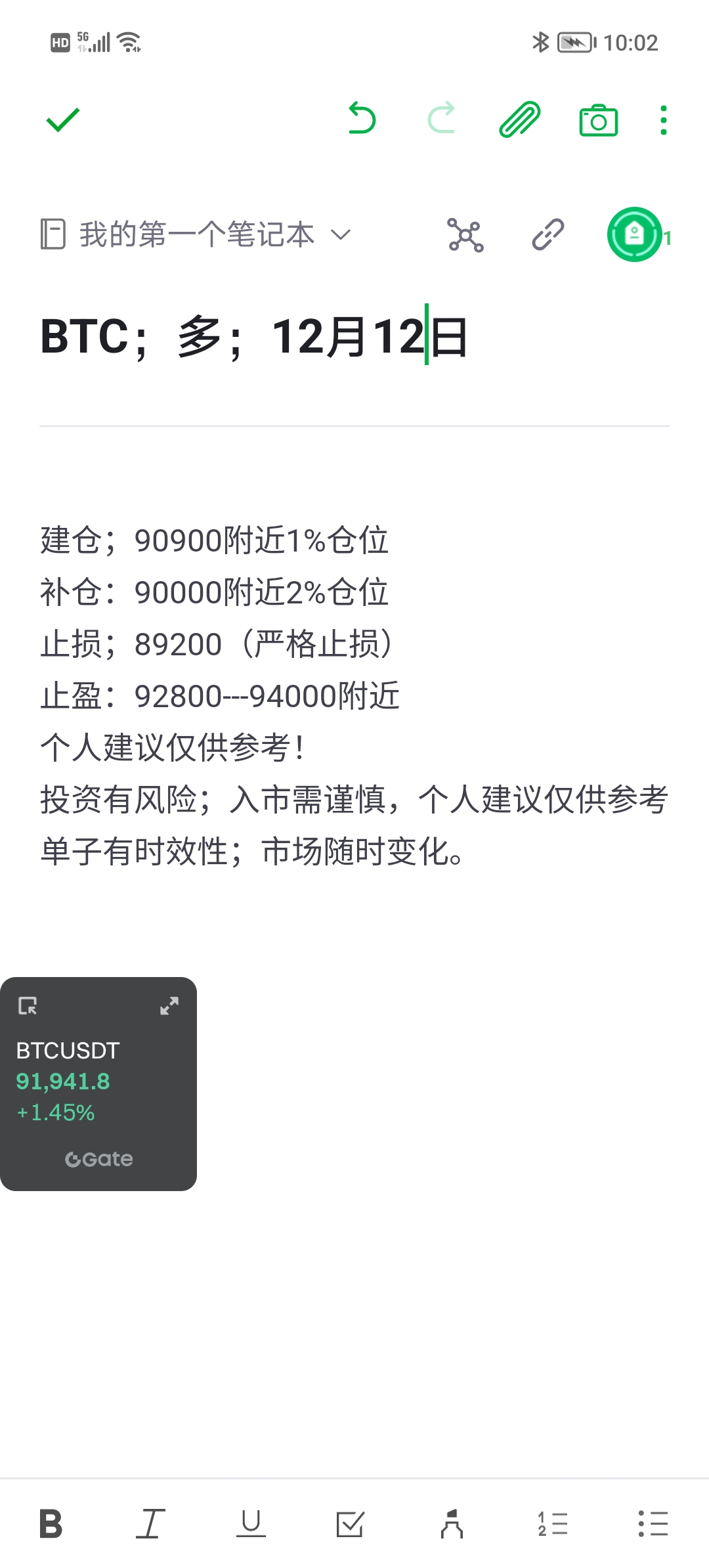 · Before entering: Clarify your investment logic (is it long-term value investment, cyclical layout, or trend tracking?), and set clear entry conditions (for example: BTC drops to a key support level, specific technical patterns form, significant positive news emerges).