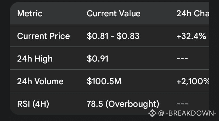 Resistance: The price touched $0.91 before finding heavy selling pressure. The next major hurdle is the psychological $1.00 level.