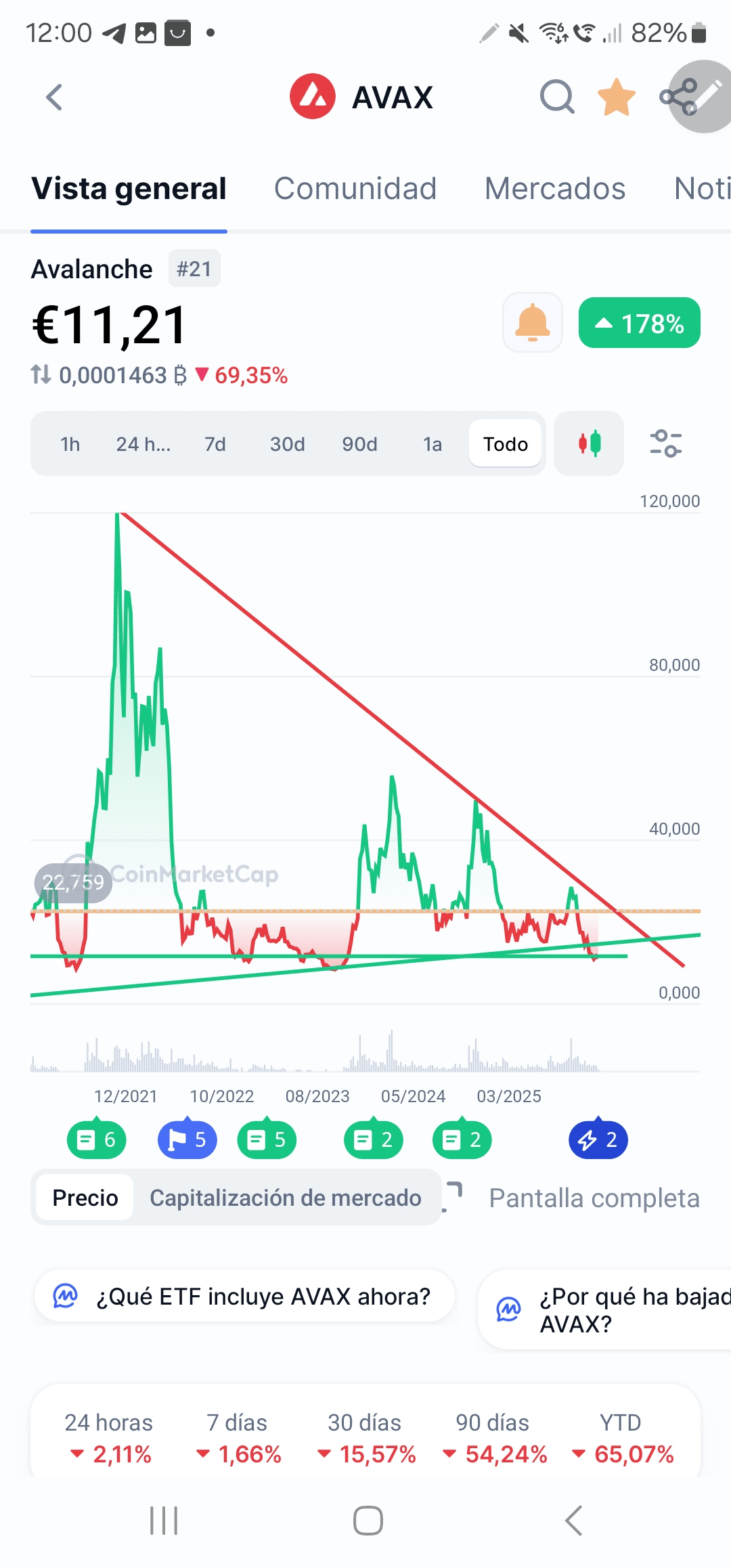 * This pattern shows that, despite the bounces and intermediate bullish periods, the maximum price of AVAX in each cycle has consistently been lower than the previous one.