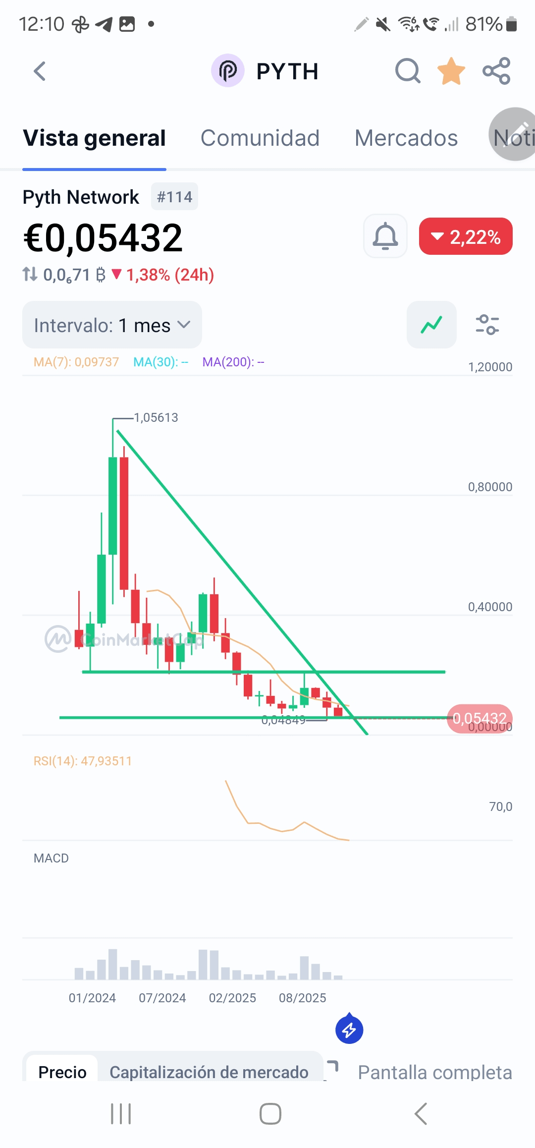 The price of PYTH is in a critical consolidation phase near its historical low.
