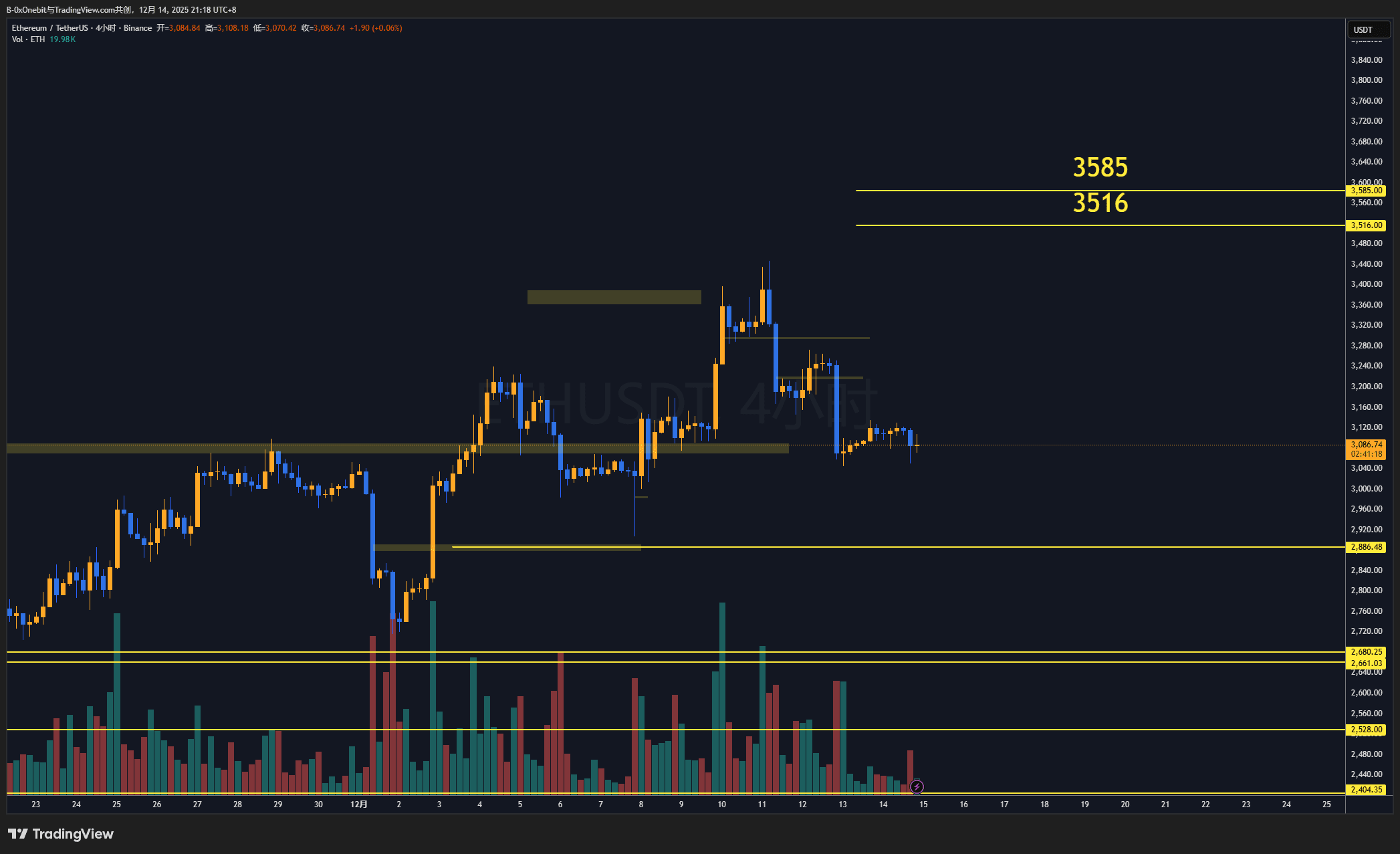 Tonight until tomorrow's pre-market in the US stocks, pay attention to the price performance of this support area. If it breaks below around 3000, short-selling requires quick and diligent profit-taking.
