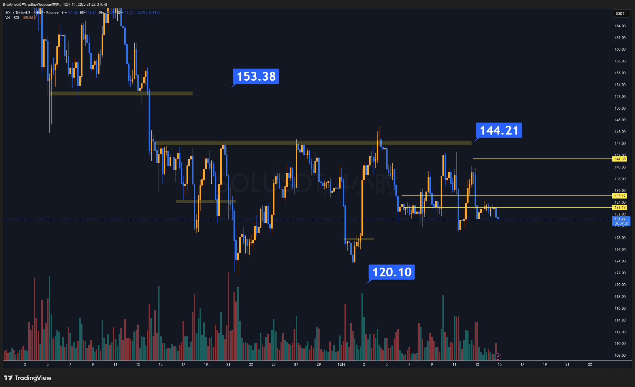 The 4H level consolidation structure is starting to weaken with the market. The rebound pullback tests around 144 multiple times but fails to hold.