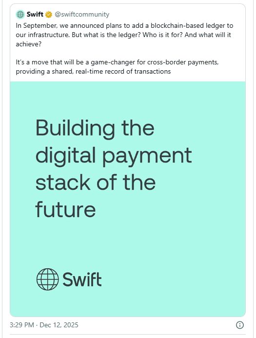 His comments revived interest in what happens if a global payment system like SWIFT 🏦 adopts blockchain rails designed for real-time settlements. ⏱️