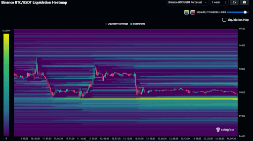 Bitcoin investors face a period of low volatility as year-end trading remains unpredictable. Analyst Daan Crypto Trades noted, “$BTC Decent liquidity cluster right below. With a new week approaching, a setup where the equal lows get taken out into a bounce would be something I'm watching.”