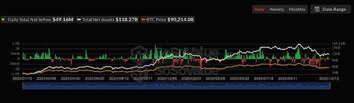 After mid-2025, large outflows of over $500 million became more frequent, particularly between August and December. Total assets fell from over $160 billion at their peak to around $118 billion by December 2025.
