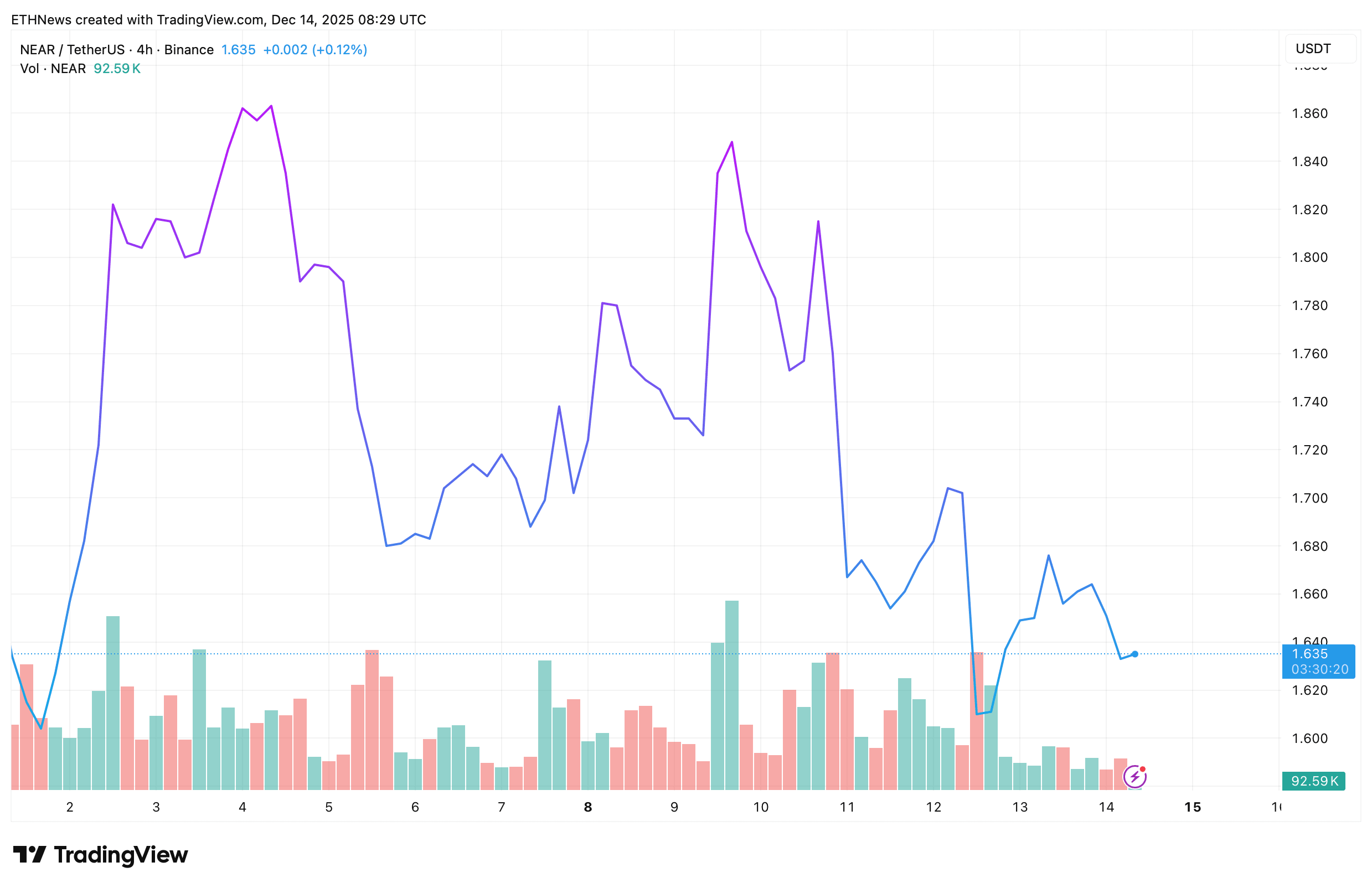 The chart provided by the analyst shows the lowest valuation zones observed since early October and late November. NEAR is moving within a clearly defined downward trend, but the price continues to hold above the $1.60 zone, which has repeatedly acted as a stabilizing level. Van de Poppe asserts that this sell-off reflects undervaluation rather than a weakening of fundamentals, noting that demand for the token is growing while sentiments have yet to change.