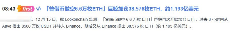 Who is the whale? It is the one who once shorted ETH on a large scale. Now he is borrowing coins to buy in, and it's real money, 190 million dollars. Is he stupid? Definitely not.