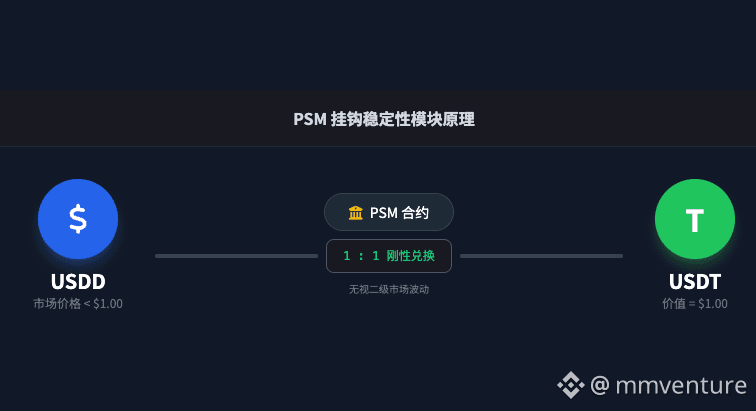 PSM (Peg Stability Module):这是 2.0 最关键的“定海神针”。它允许用户无滑点 1:1 互换,目前 TRON 版拥有近 5000 万流动性。这就解释了为什么最近市场波动剧烈,USDD 却能死死锚定在 0.999 左右。