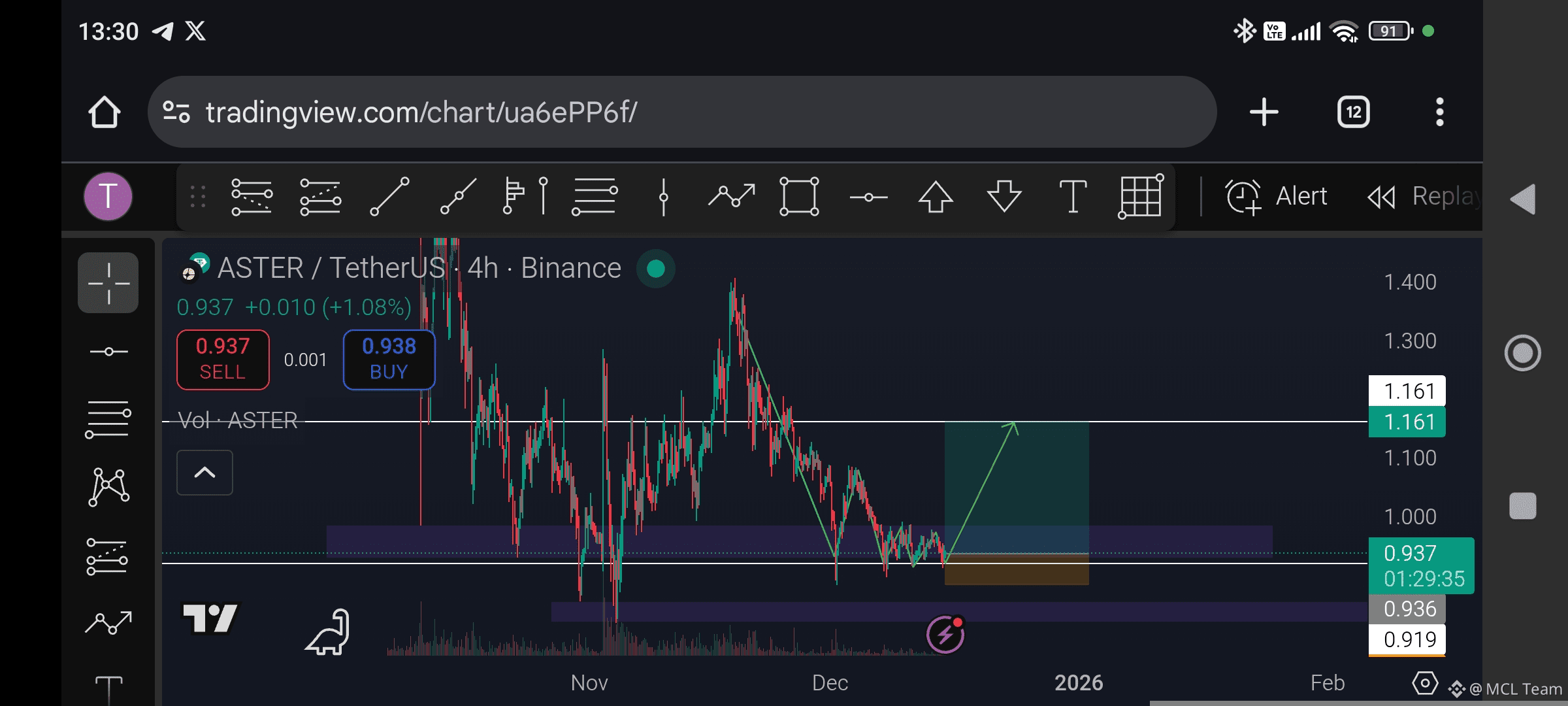 Price has found strong support at ~0.937 after a downtrend, forming a higher low with a breakout from consolidation. Volume rising on the bounce – clear reversal sign.