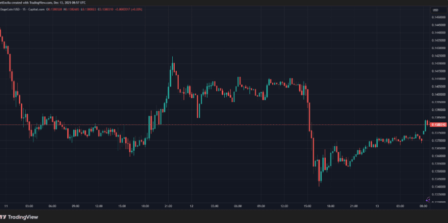 Carter pointed out that currently DOGE is hovering around the key support area near $0.135. This position is located on the lower boundary of the long-term descending triangle pattern, and the price has remained above the support line within a short-term timeframe of three days. It can be said that this has become a key battleground for buyers and sellers.