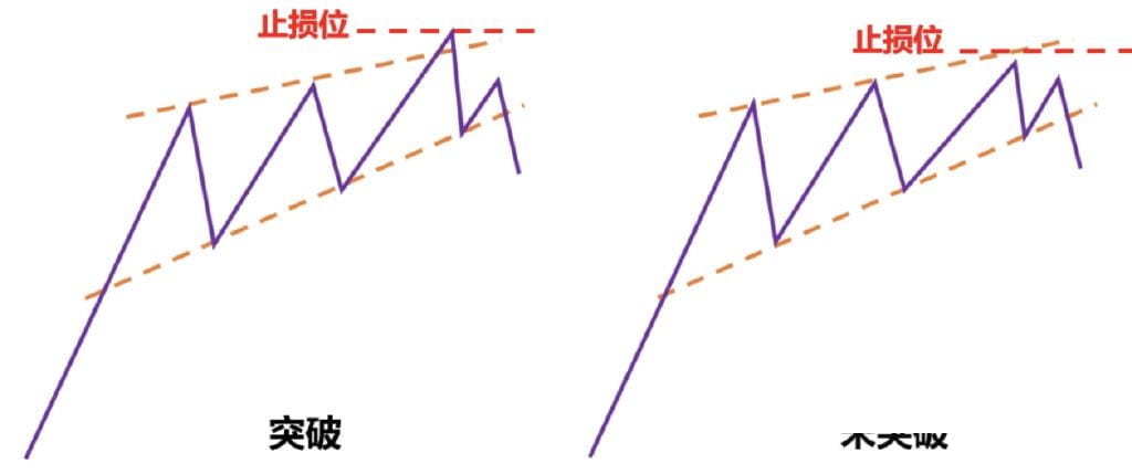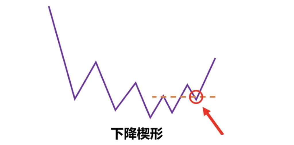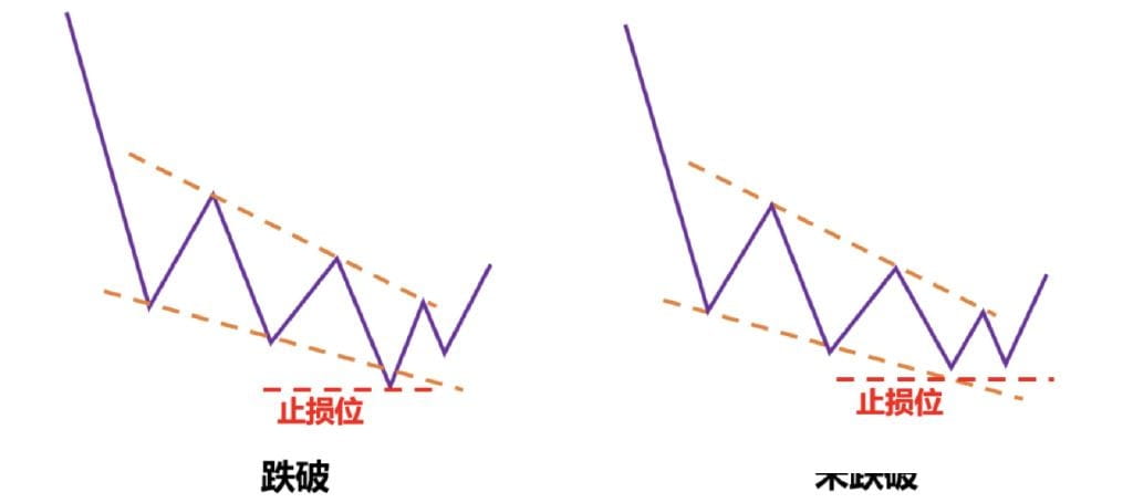For the descending wedge, some will also use the channel line to place orders for left-sided trading.
