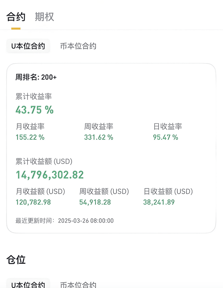 2. Buddhist-style fixed investment (15U per week). Invest a fixed amount of 15U weekly to buy Bitcoin contracts (for example, if it's currently 50,000, you believe it can rise to 100,000 in the long term). Treat it as a piggy bank; don’t panic if it drops, wait for half a year to a year, suitable for those who don't have time to monitor the market.