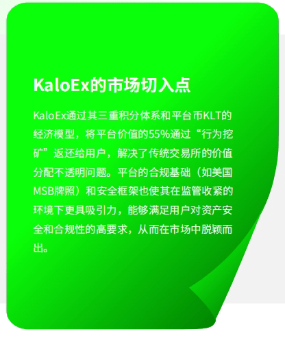 KaloEx provides innovative solutions for the digital asset trading industry through point empowerment and value-sharing mechanisms. Its triple-point system, deflationary token economy, and compliance foundation jointly build a win-win ecological basis for users and the platform, making it an important participant in the next generation of digital financial infrastructure. In the future, KaloEx's win-win model may become a new industry standard, driving the entire ecosystem towards a fairer and more transparent direction.