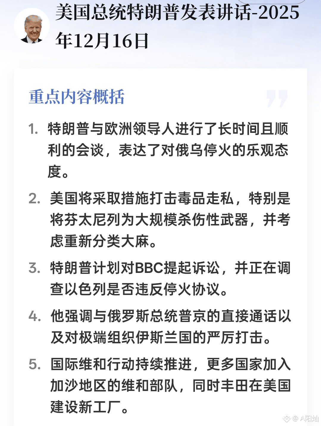 特朗普2025年12月16日讲话全文:以本土堡垒之名,重振美国荣光