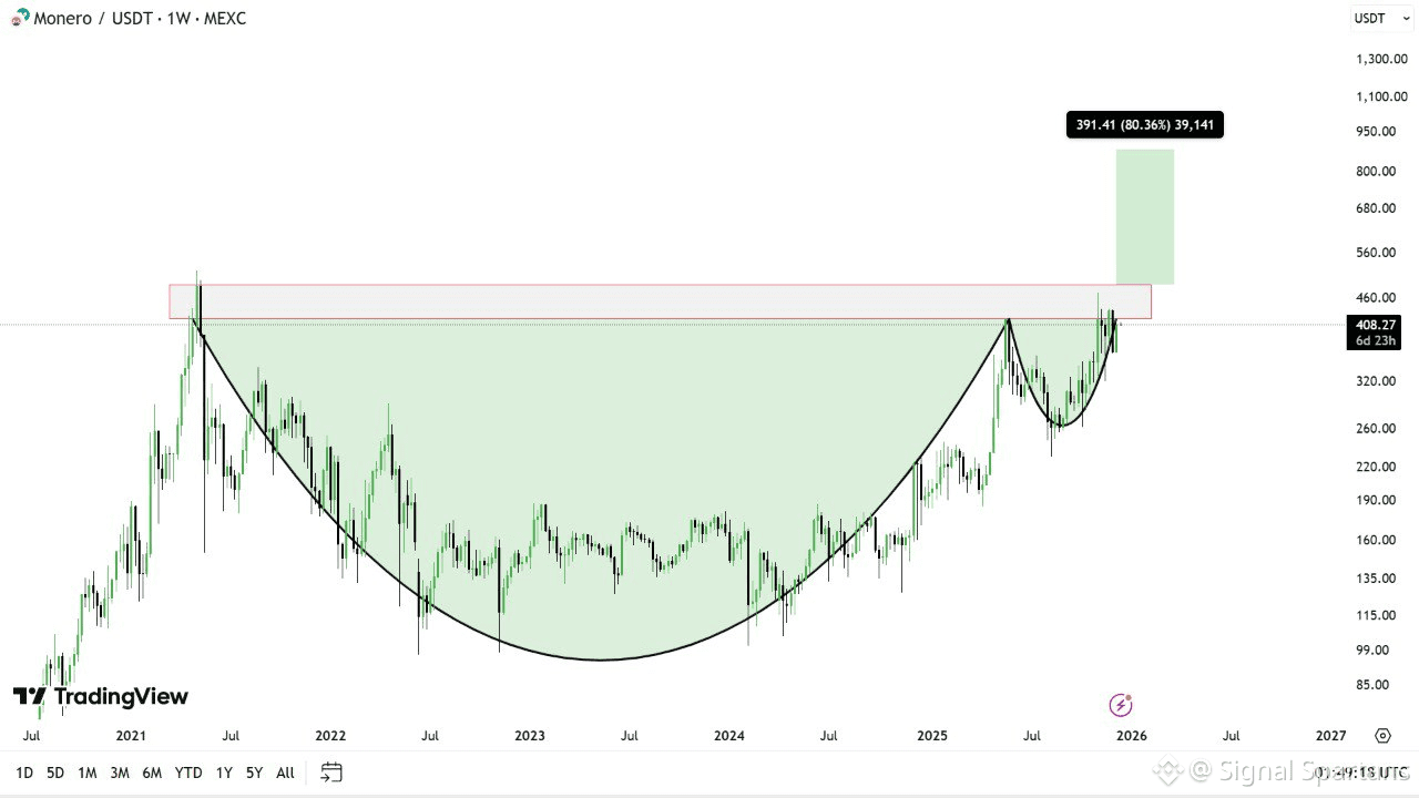 $XMR is also looking quite Bullish, as it's forming the Cup & handle 🦬 pattern in the Macro-chart.