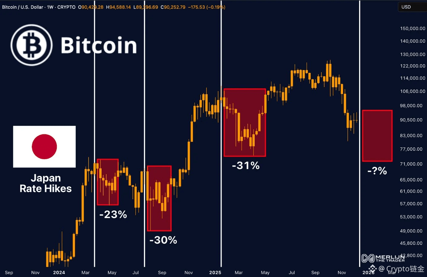 加密市场(比特币、以太坊)超级敏感于流动性变化,日本加息就像给这个“高风险派对”泼冷水。2025年加密市场本来在牛市(BTC一度破10万刀),但加息可能加剧回调。下面是关键影响: