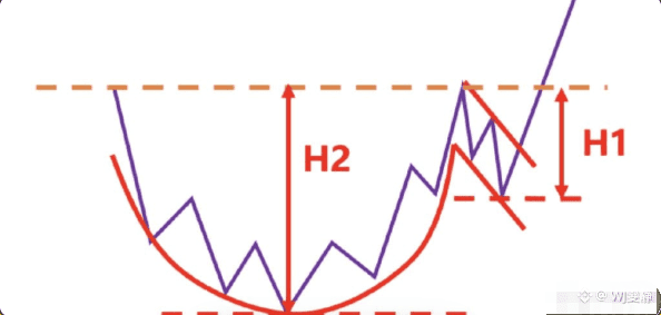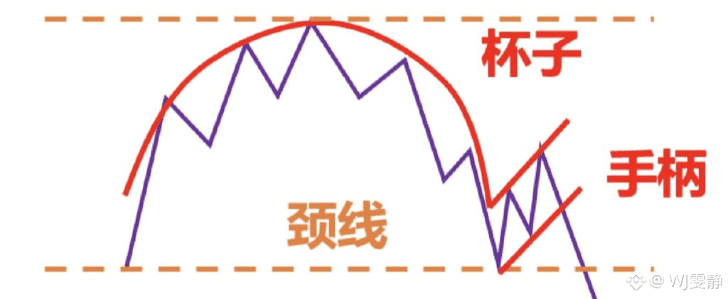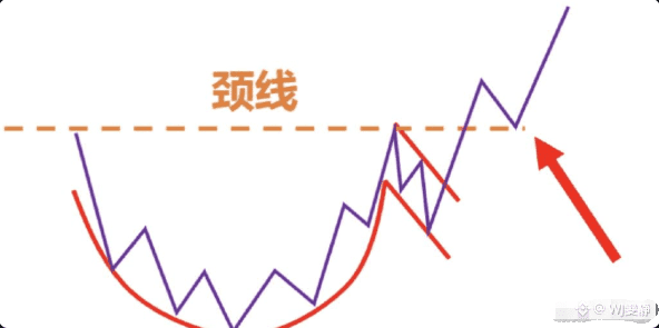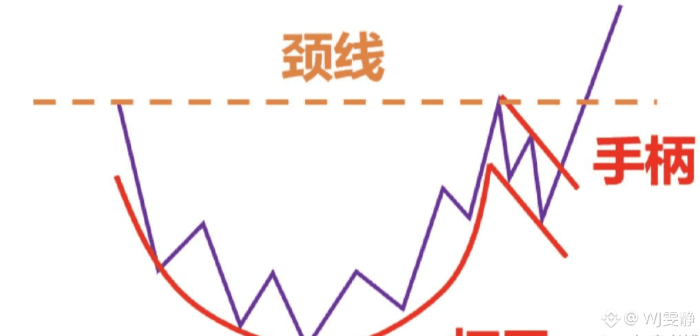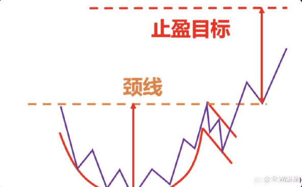看涨杯柄由两部分组成。顾名思义,就是杯子和手柄,颈线是阻力位。