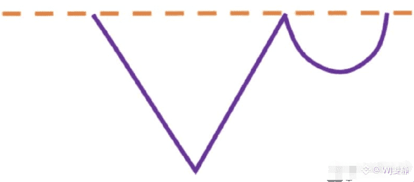 另一点需要注意的是,我们要尽量去参与底部较长、U 形较多的杯形,最好避开底部呈尖锐 V 形的杯形,如图3.10-8所示,这类急跌急涨的,一般容易带来能量耗尽。