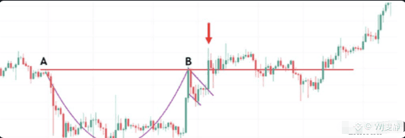 现在,它看起来像一个球或一个底部呈圆形的物体,这时候如果关注成交量的话,会发现,越靠近杯子形态的位置,成交量应该不断增加,这表明买盘压力增加。