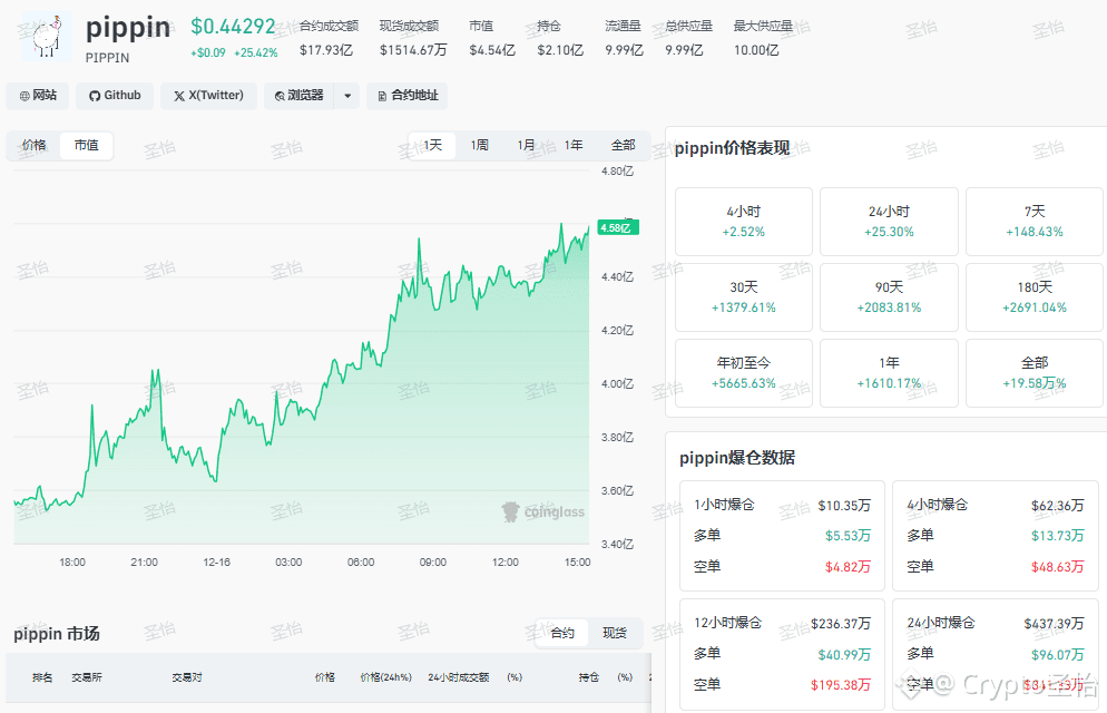 一个在币圈摸爬滚打多年的老韭菜。今天早上一起床,就看到PIPPIN又爆了——24小时涨超25%,7天直接翻了一倍多!你是不是也在犹豫:现在该追,还是该跑?别急,听我用大白话给你捋清楚。