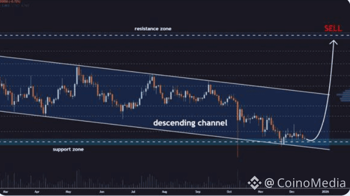 SHIB is consolidating at key support within a descending channel on the 2-day timeframe. If this level holds and price confirms a bounce, upside targets sit at $0.00000885, $0.00001150, $0.00001410, $0.00001770, and $0.00002370. Momentum is starting to shift in favor of bulls if support holds, but breaking down opens the risk of a deeper correction.