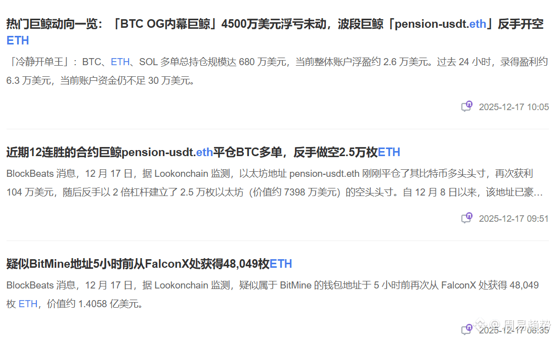 今天有个巨鲸动作很骚:pension-usdt.eth 平掉BTC多单,反手开了2.5万枚ETH空单(约7400万美元)。这哥们近期12连胜,他的选择往往暗示方向。同时,BitMine也在悄悄吸货4.8万枚ETH。巨鲸一边做空,机构一边接货?说明市场分歧极大,震荡还没结束!