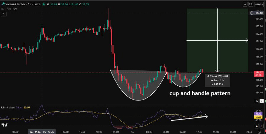 The analyst points to the formation of an emerging cup and handle pattern, which suggests a controlled pullback rather than violent dispersion.