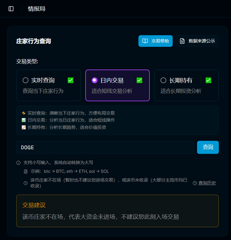 The best thing about this tool is that it can directly tell you whether the 'main player is present' or not. DOGE is currently in a vacuum state, better to stay out to preserve capital.