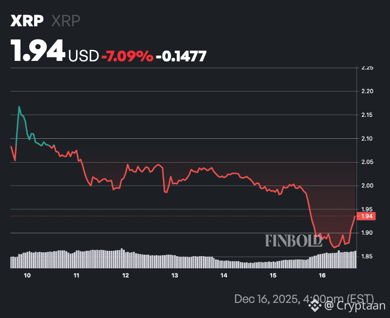 By press time, XRP was trading at $1.94, down about 2.5% over the past 24 hours, while on the weekly timeframe, the asset is lower by more than 7%.