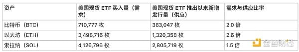 Prediction three: With accelerated institutional demand, ETFs will purchase more than 100% of the new supply of BTC, ETH, and Solana.