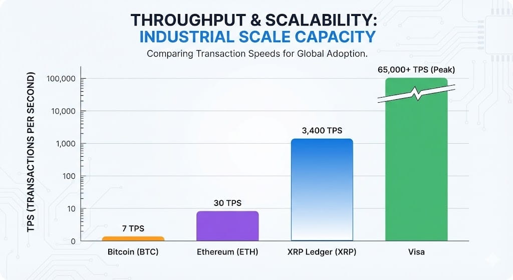 XRP solves this by acting as a "bridge currency." It does not require mining (Proof-of-Work) or traditional staking. The XRPL uses a Federated Consensus Protocol, allowing settlement in 3 to 5 seconds with a negligible transaction cost (fractions of a cent).