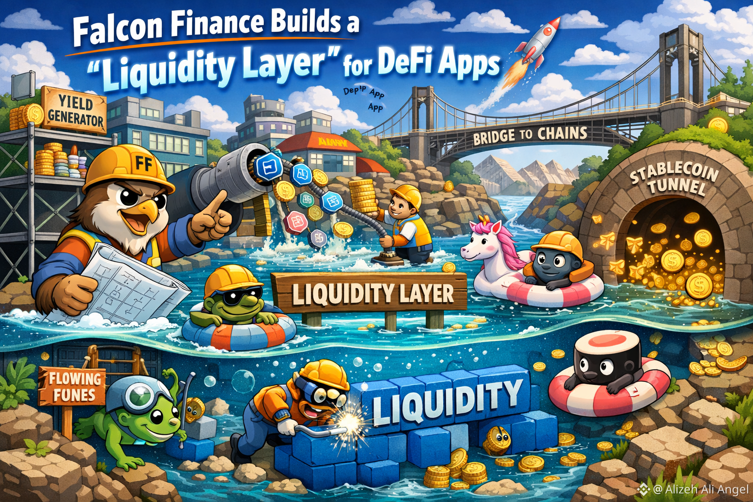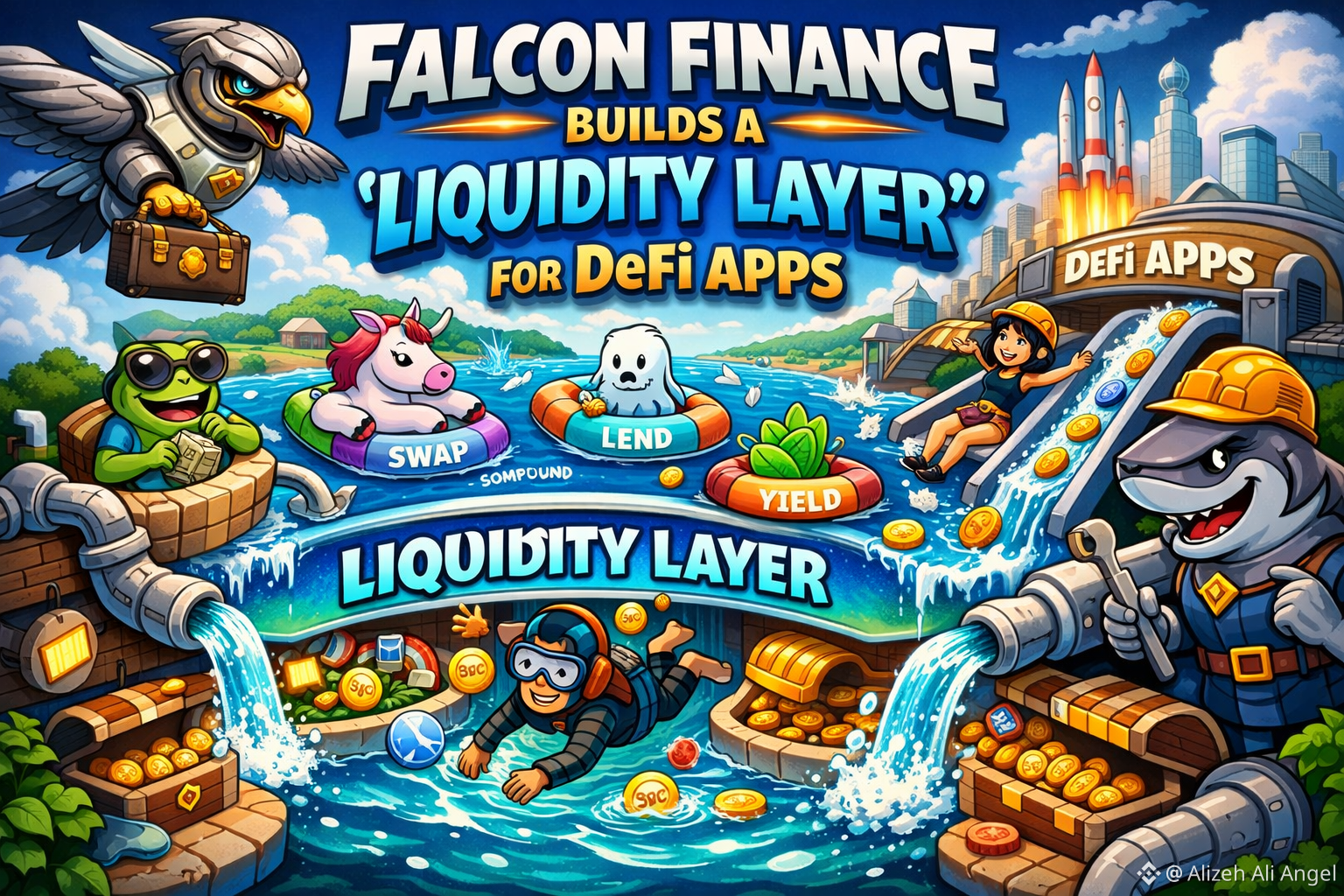 @Falcon Finance For years, DeFi has had a familiar problem: liquidity arrives in bursts, then leaks away into isolated pools with their own rules and incentives. Builders try to solve it with more pools, more rewards, more clever routing. Users learn the hard way that “deep liquidity” can mean “deep until next week.” So when people start talking about a “liquidity layer,” I hear a request for stability more than novelty. They want a common dollar-like building block that apps can rely on, so lending markets don’t splinter into ten incompatible dollars, each with its own quirks, risks, and fragile liquidity.