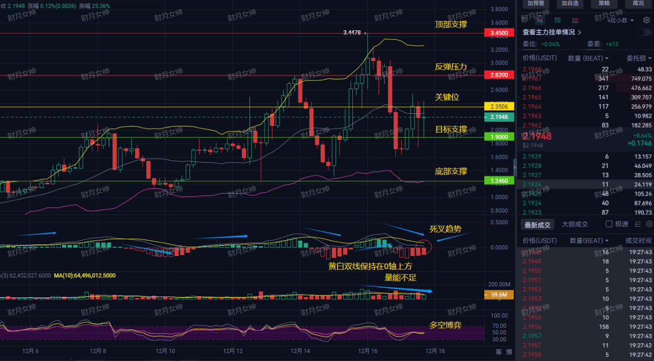 My judgment is crystal clear: right now, the BEAT surge is the last chance to escape, and a pullback is a certainty. Want to directly surge to 2.82 or even touch 3.45 today? The odds are lower than winning the lottery. A dead cross rise without volume support is obviously 'baiting'—making retail investors think the trend is still on, foolishly jumping in to take the bait. There was a cryptocurrency last year that followed this pattern: dead cross + shrinking volume slow rise, eventually crashing from 2.3 directly down to 1.1, trapping a bunch of retail investors who chased the rise.