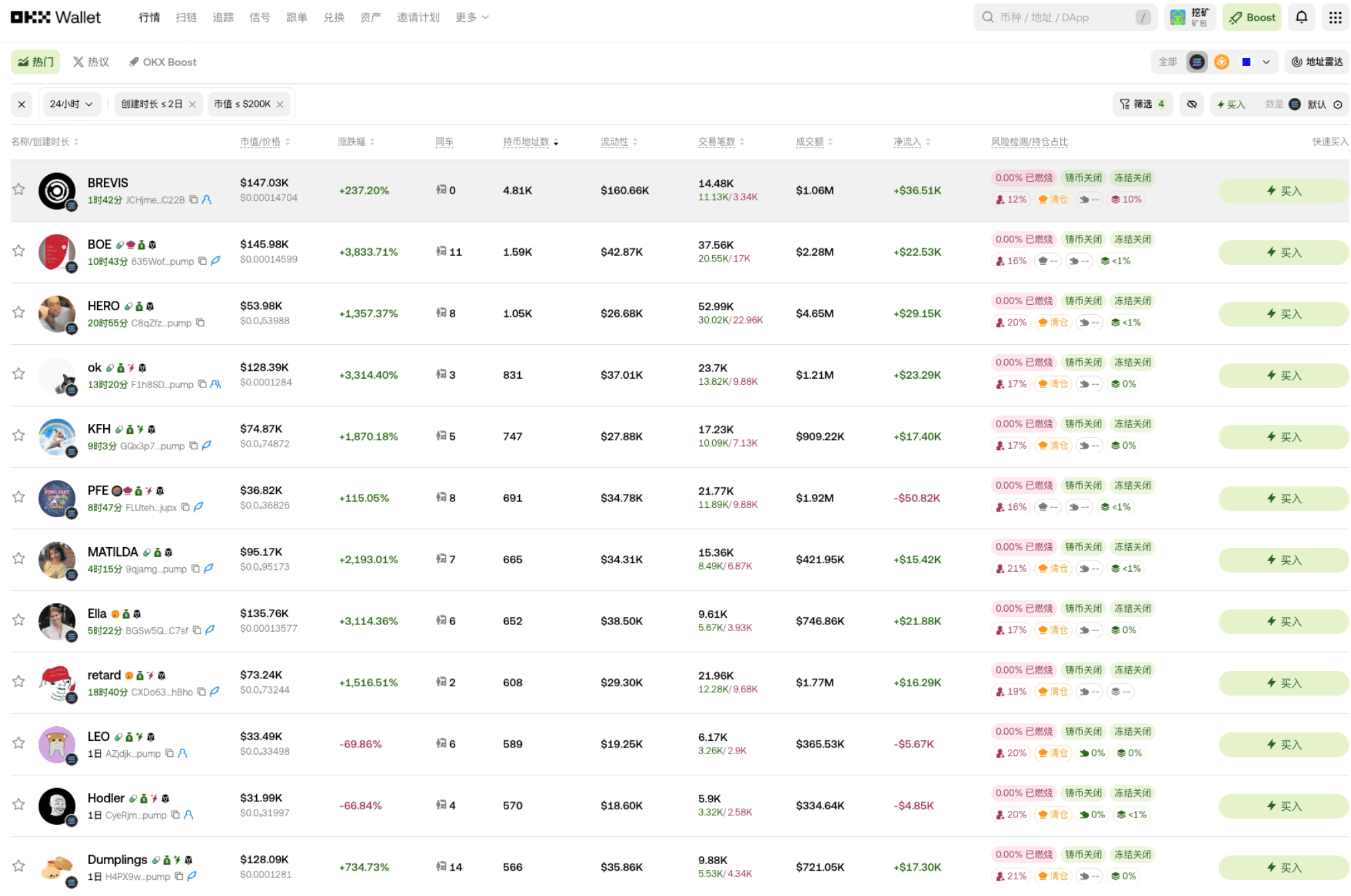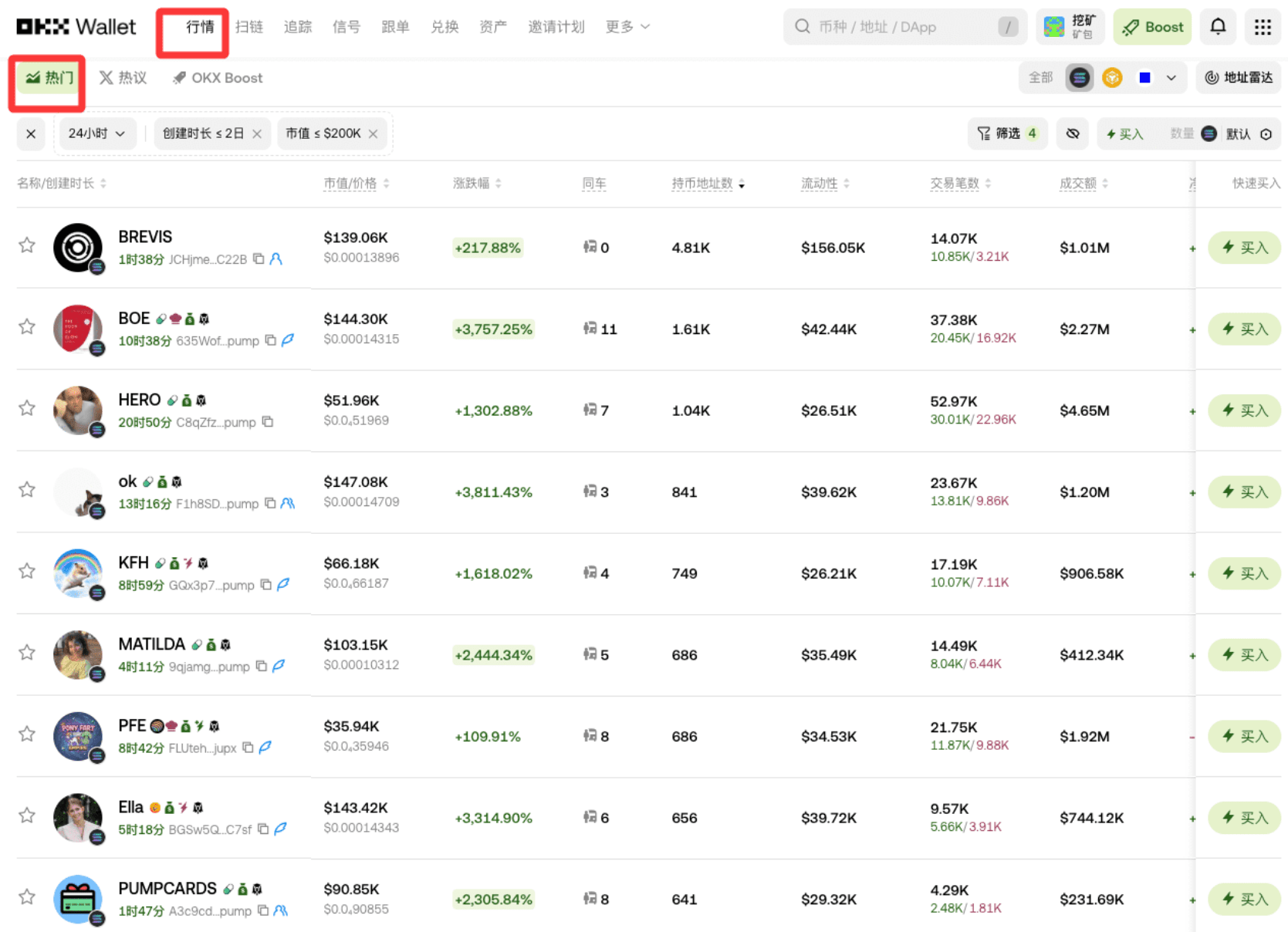 The host recommends beginners use OKX for an enhanced experience, completely aligned with our usage habits! The operation path is super simple: open the OKX Wallet and find the popular MEME coin in the market rankings.
