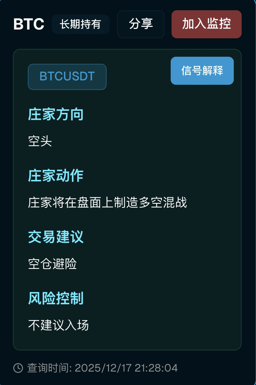 Ultimately, it comes down to the risk factor: the risk score returned to around 3, indicating it has shifted from 'extremely untouchable' back to a state of 'tradable but uncomfortable'. Note the key point of this statement: tradable ≠ suitable for heavy positions. The market now resembles a 'hunting ground', not a 'highway'. The main players are in a chaotic battle, marginal liquidity is declining, and the market-making wall is controlling volatility—any heavy leverage chasing direction is like exposing a fatal weakness.