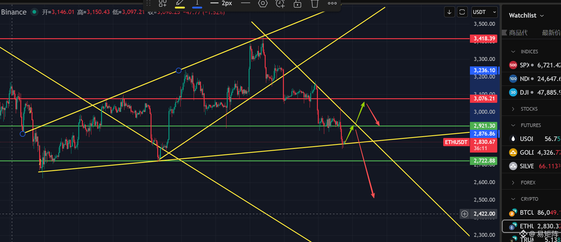 (欢迎关注,学习结构性交易,本人自创易矩阵分级动静态决策系统,让你感受结构交易的强大)#ETH走势分析 #加密市场观察