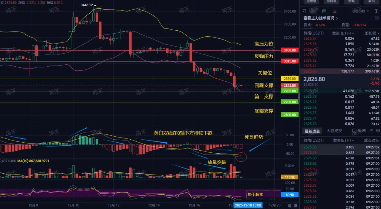 The chart you sent is very clear, the current price is 2825, the strong resistance above is 3015, the key neckline below is 2880, and 2785 is an important support.